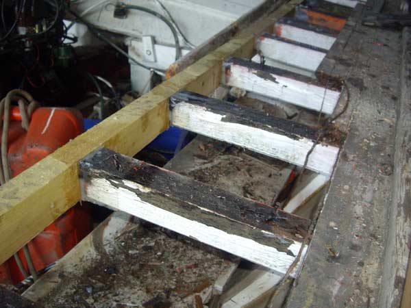 Un demi chevron a été fixé à la membrure afin que le bateau de tienne un minimum...